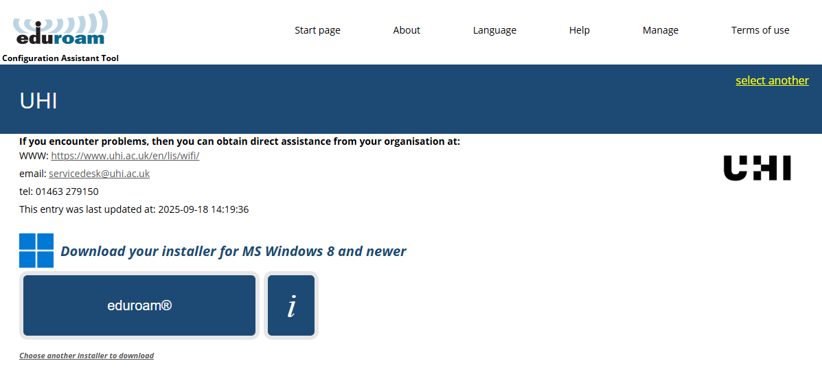 If you have previously connected to Govroam at a different location, you may find that you will be connected to this automatically upon visiting a UHI building.