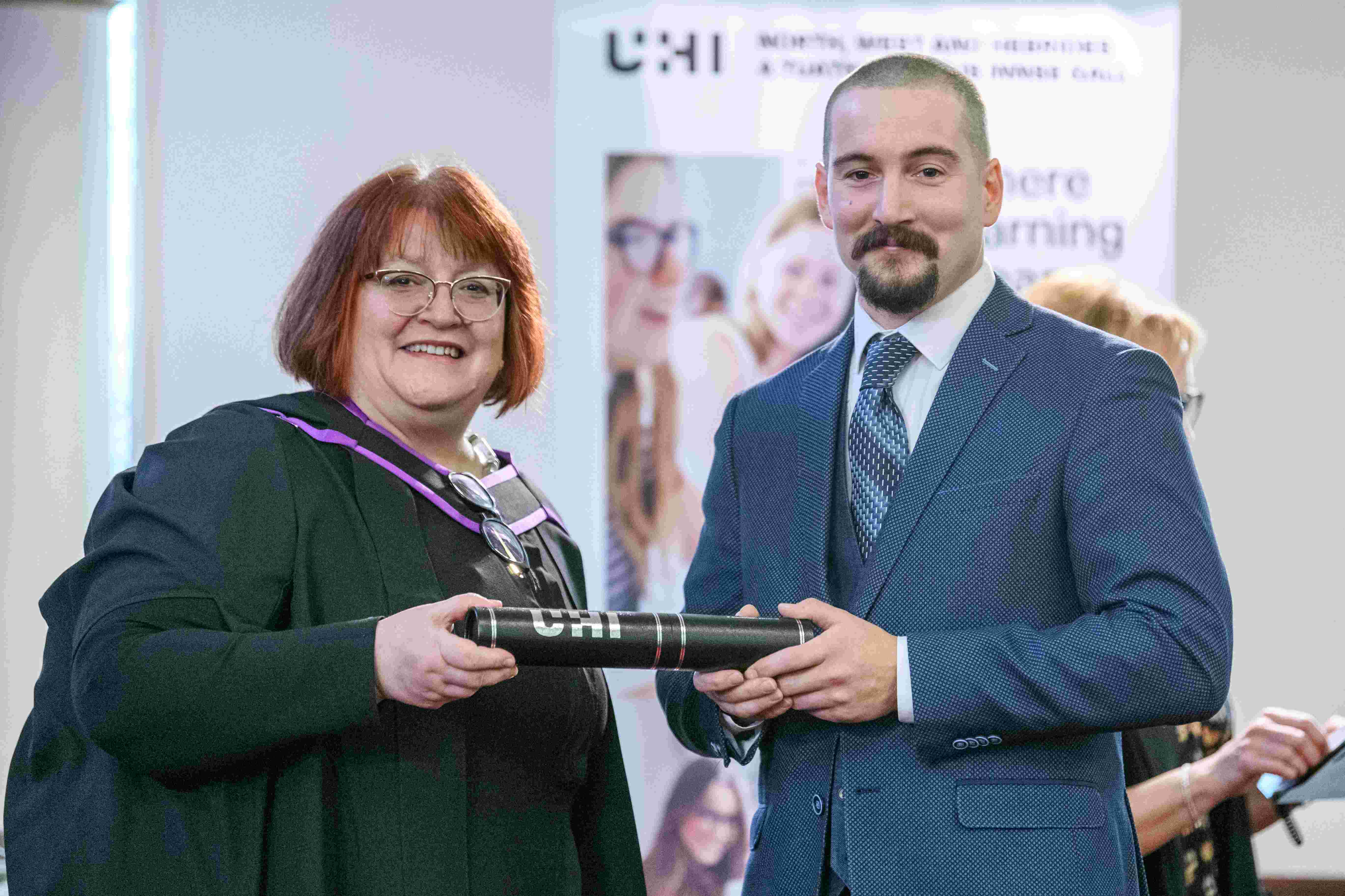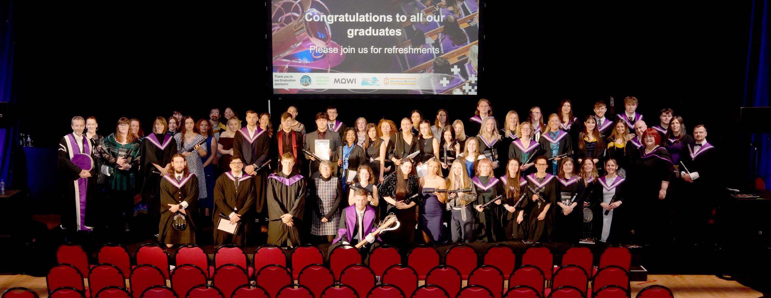 In Fort William, around 70 students attended the ceremony, which was led by Master of Ceremonies, Tracy Kerr, Head of Performance and Planning. Martin Johnstone, a lecturer at UHI North, West and Hebrides, led the academic procession as Mace Bearer, recognising his professionalism and dedication as a new employee in launching a brand new course, The CECA Scotland Academy Civil Engineering Operative course last year.