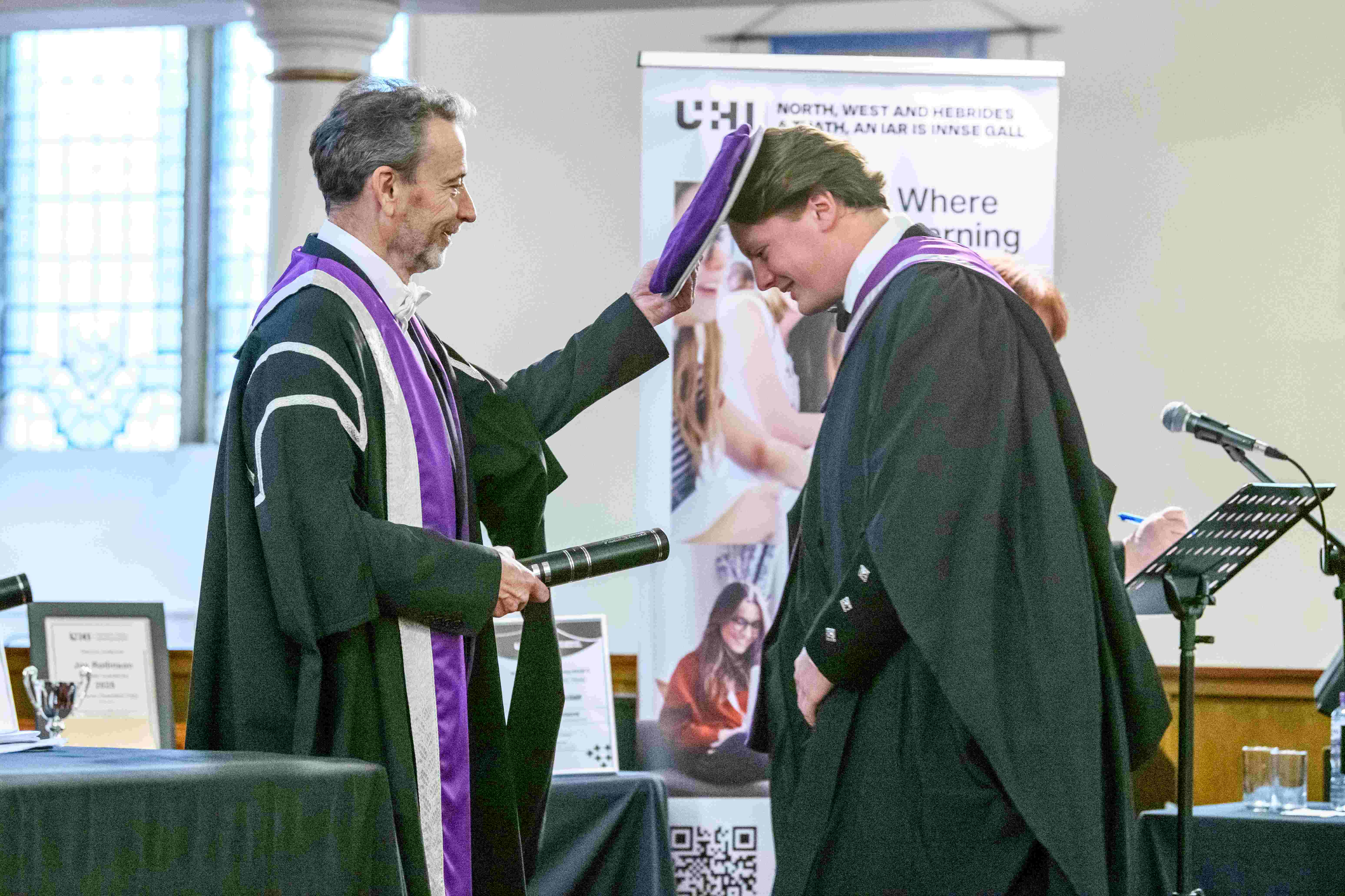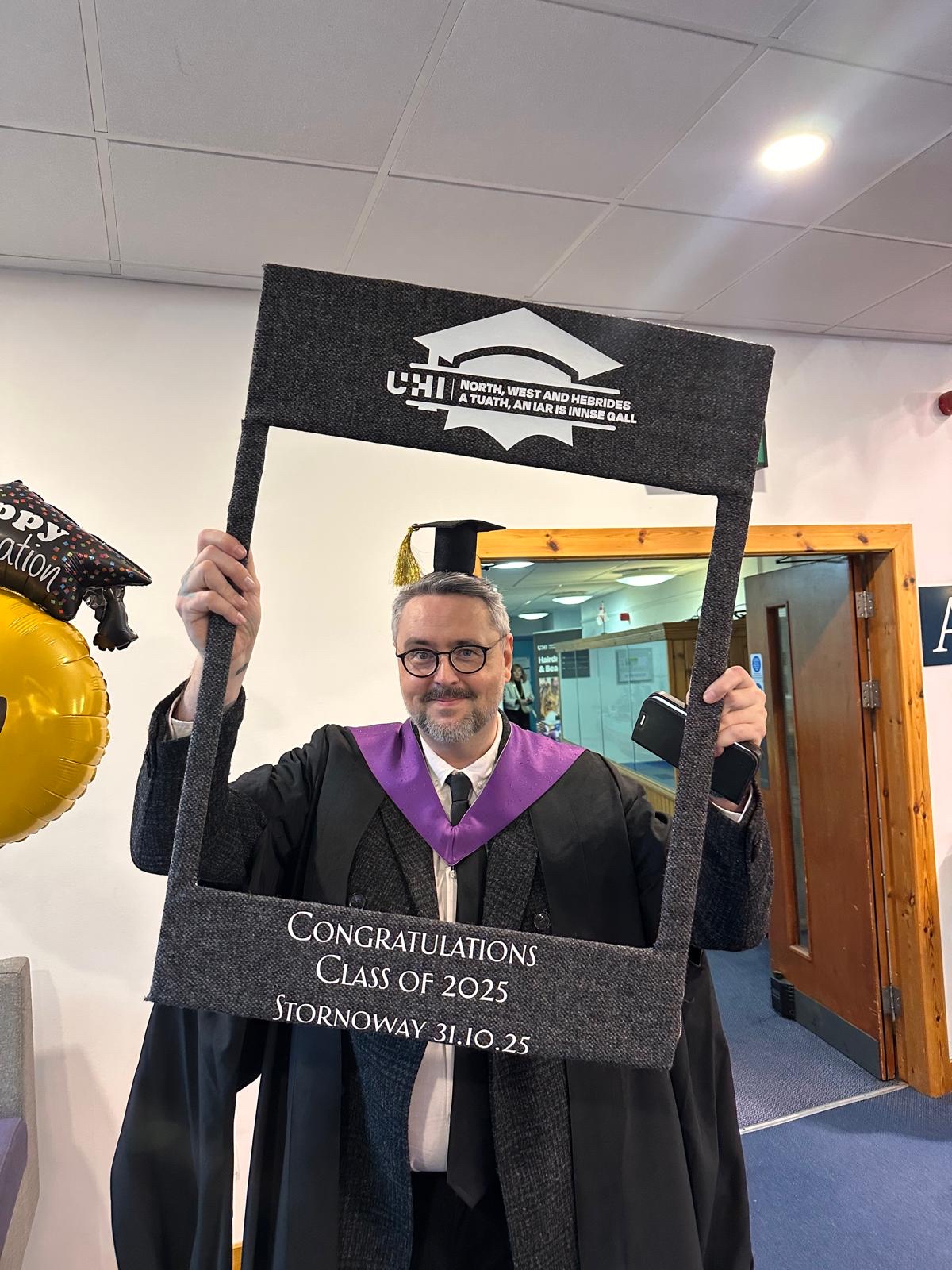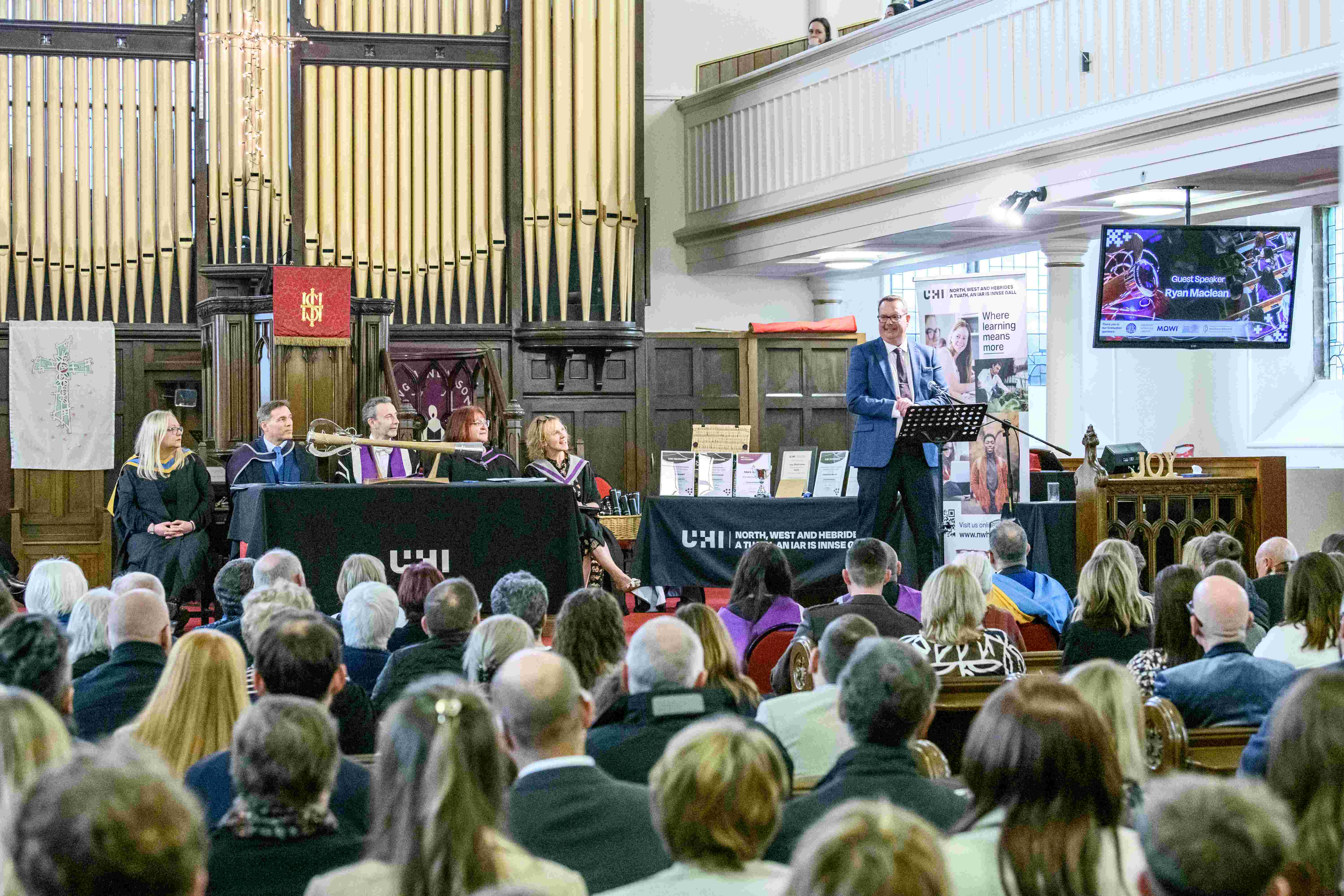 All graduates in Martin's Memorial ChurchGuest speaker Lewis GilliesLydia Rohmer, Principal and Chief Executive of UHI North, West and HebridesTwo people smiling and posing in front of a “happy graduation" banner.Five graduates in gowns standing together and smiling, holding fun photo props in front of a “Happy Graduation” bannerFour graduates standing in front of a backdrop that says “Congratulations graduates!”, smiling for the photoA graduate in a gown stands smiling in front of a “Congratulations graduates!” backdropPiper, Liam Gray.Fiona Grant and Derek LewisKaty DuncanLydia Rohmer, Andy Macleod, Dave MacLeod, Brian WilliamsMacebearer Martin JohnstoneStornoway graduates seated in the churchA graduate in a gown smiles while holding up a large photo frame prop that says “Congratulations Class of 2025, Stornoway 31.10.25"A graduate stands smiling in front of a “Where learning means more” backdrop decorated with black, gold, and clear balloons.A large group of golf graduates stand in a row wearing gowns and smiling for the photo.Iain Morrison, Honorary Sporting Blue WinnerTwo graduates in gowns stand smiling together, holding a graduation scroll.Lydia Rohmer and George SinclairGuest speaker Ryan Mclean at the lectern during Thurso graduation ceremonyEquine lecturer Kerry Paul receives scroll from Brian WilliamsBrian William presents student with scrollPiper Will Fryer leads the academic procession down the aisle at the graduation ceremonyJodie Williamson wearing gown and holding scrollJoy Rollinson and Lydia RohmerLydia Rohmer and Mark AdamsSporting Blue winner Louis FlemingFort William graduates