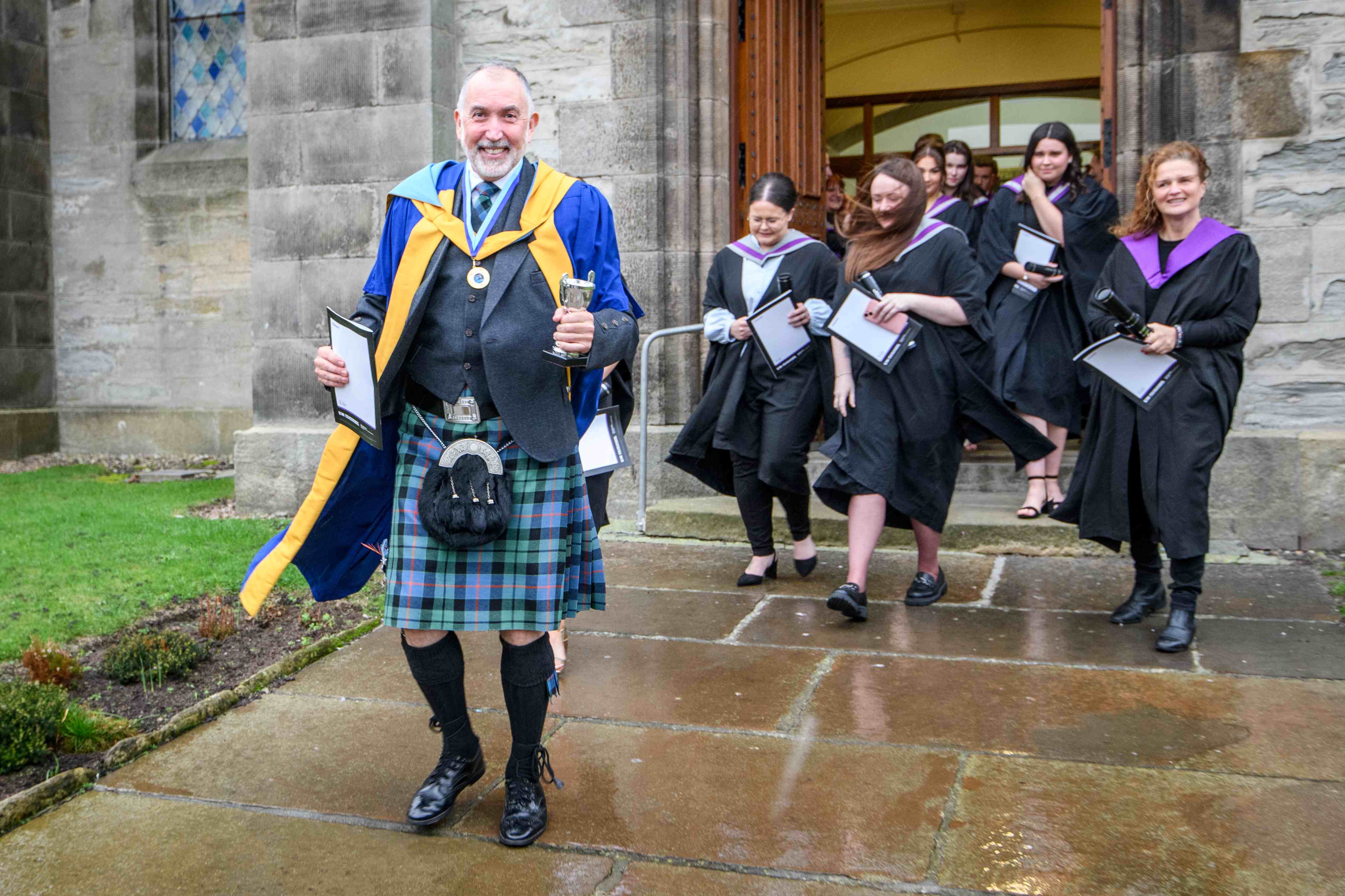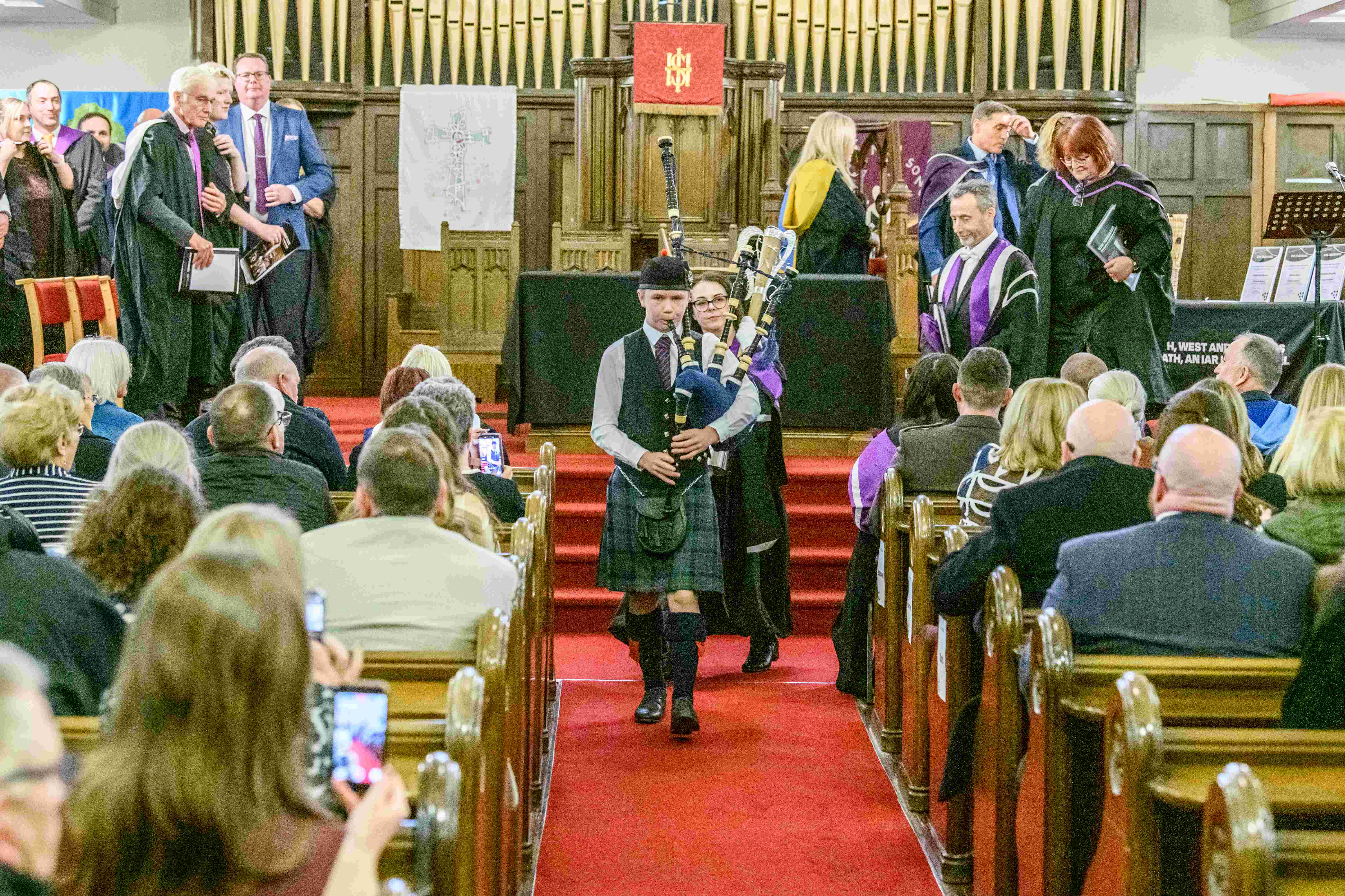 In Stornoway, around 40 students attended the ceremony at Martin’s Memorial Church, which was led by Master of Ceremonies, Joe MacPhee, Head of Strategic Projects. Ally Macleod, a lecturer and member of the Board of Management of the college was Mace Bearer for the occasion, recognising his passion for training and inspiring the next generation of engineers and electricians, strengthening links with local industry, and his contributions in giving back to the community that supported his own development.