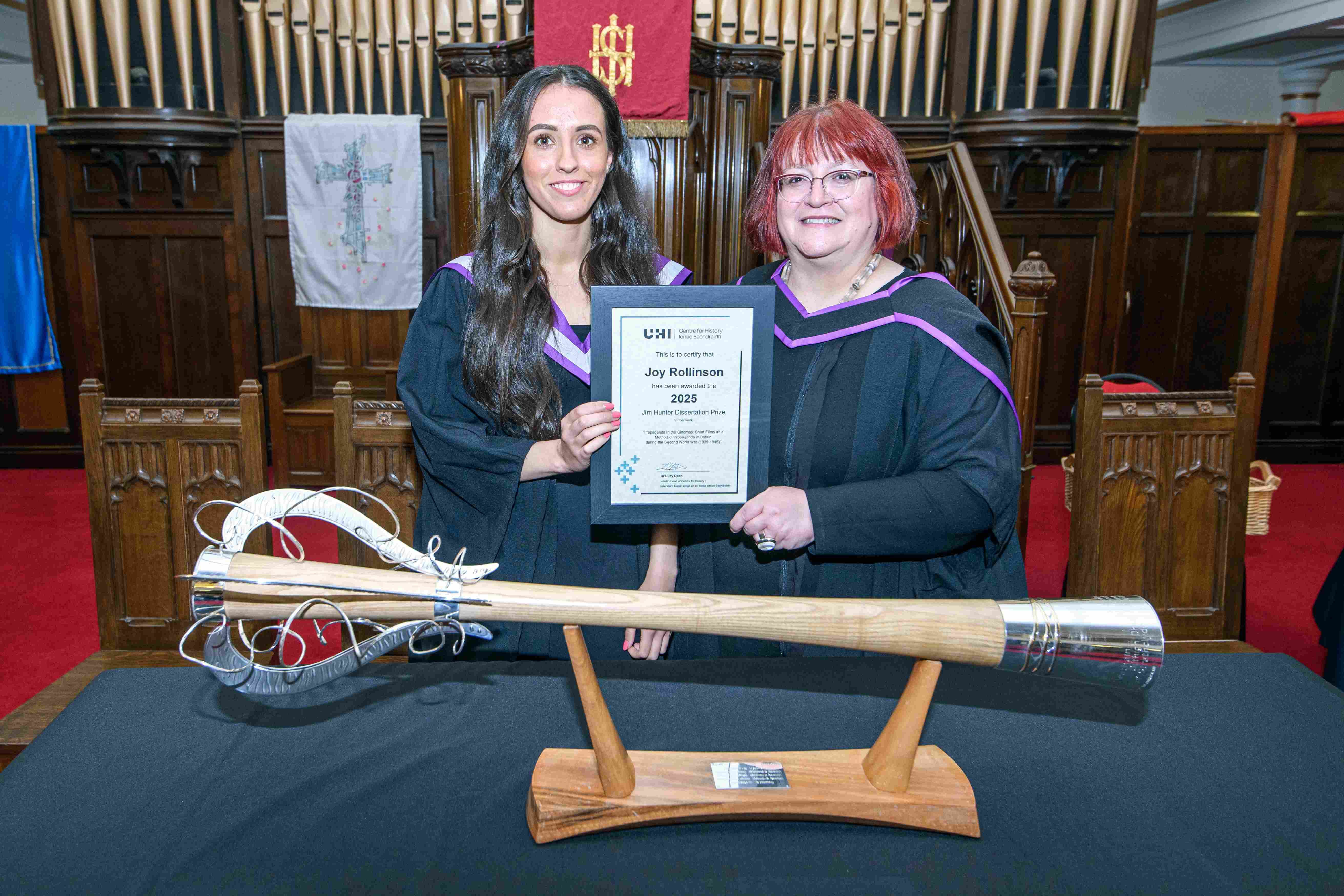- The Professor James Hunter Dissertation Prize was presented to Joy Rollinson, a BA (Hons) History student, on behalf of the UHI Centre for History and its founder, Professor Hunter. It recognises the best history dissertation by a student in 2025. Joy’s dissertation was titled ‘Propaganda in the Cinemas: Short Films as a Method of Propaganda in Britain during the Second World War 91939-1945’